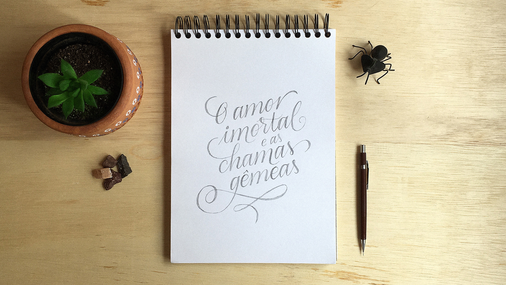 Esse lettering foi uma das primeiras idéias apresentadas como proposta para a capa de um livro de poemas, e de longe a que eu mais gostei de fazer e a que eu fiquei mais feliz com o resultado final. O projeto não seguiu adiante e acabou indo para a gaveta dos trabalhos inacabados.