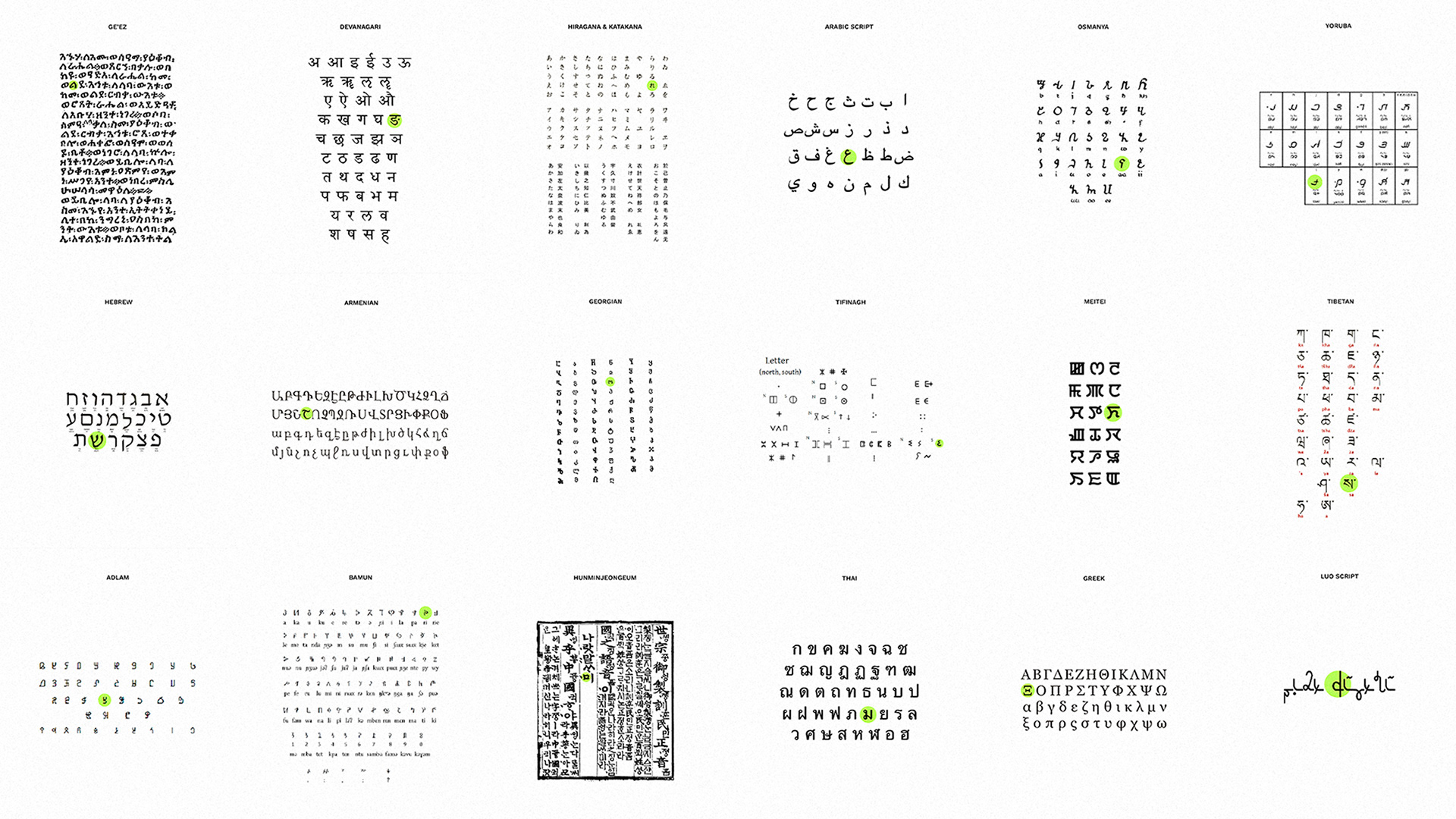 To create a logo that reflects all the decolonial diversity of solutions that exist on the planet, we were inspired by the essential element to write any name: the letters of different writing systems from across the globe.