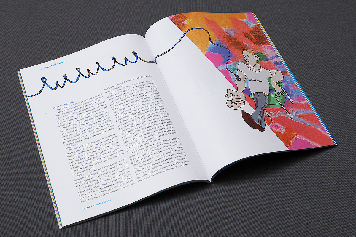 Projeto gráfico e edição de arte da revista anual do colégio Objetivo de Sorocaba, interior de São Paulo. Ilustrações da dupla Paulo Terzi Ito e Luiz Augusto Ribeiro