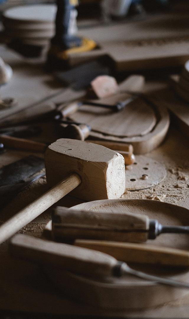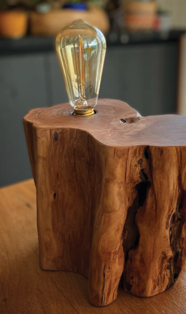 O processo criativo é guiado pela natureza, surge do diálogo entre o artesão e a matéria-prima, com atenção aos detalhes em criações artesanais únicas. Peças feitas à mão, utilizando e respeitando a madeira em sua forma bruta.
