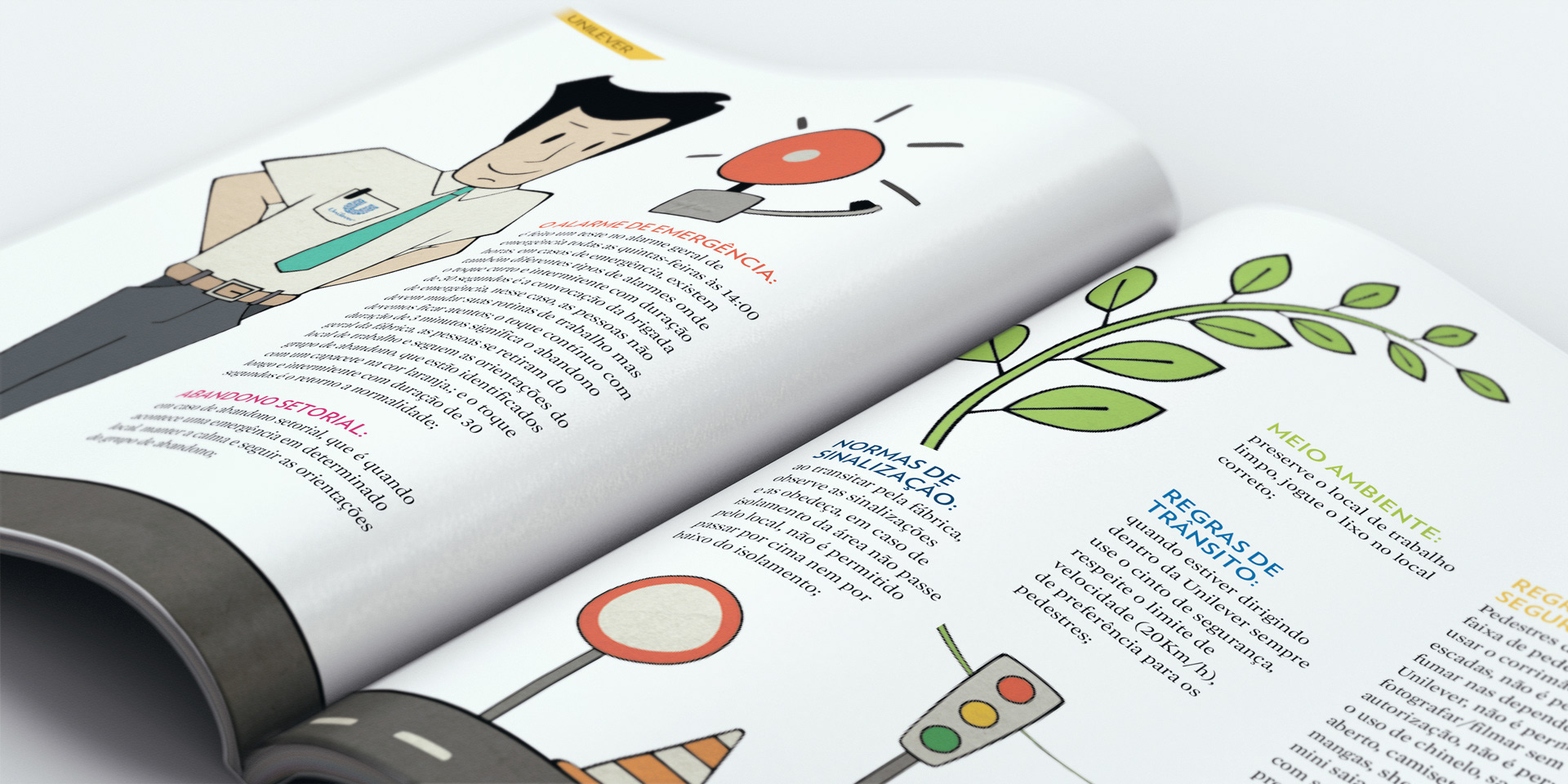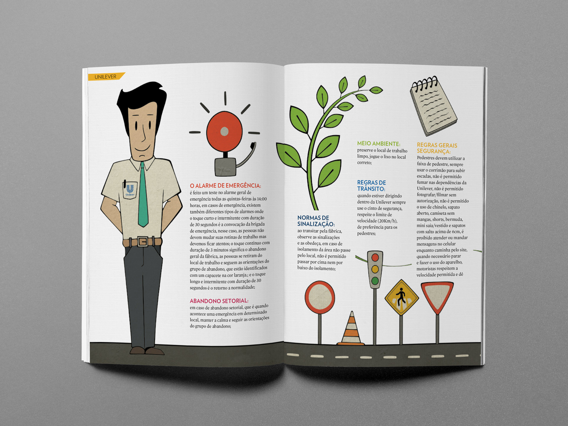 Ilustração em página dupla para guia de boas vindas para o projeto Ultralogistik da Unilever em Valinhos, interior de São Paulo.